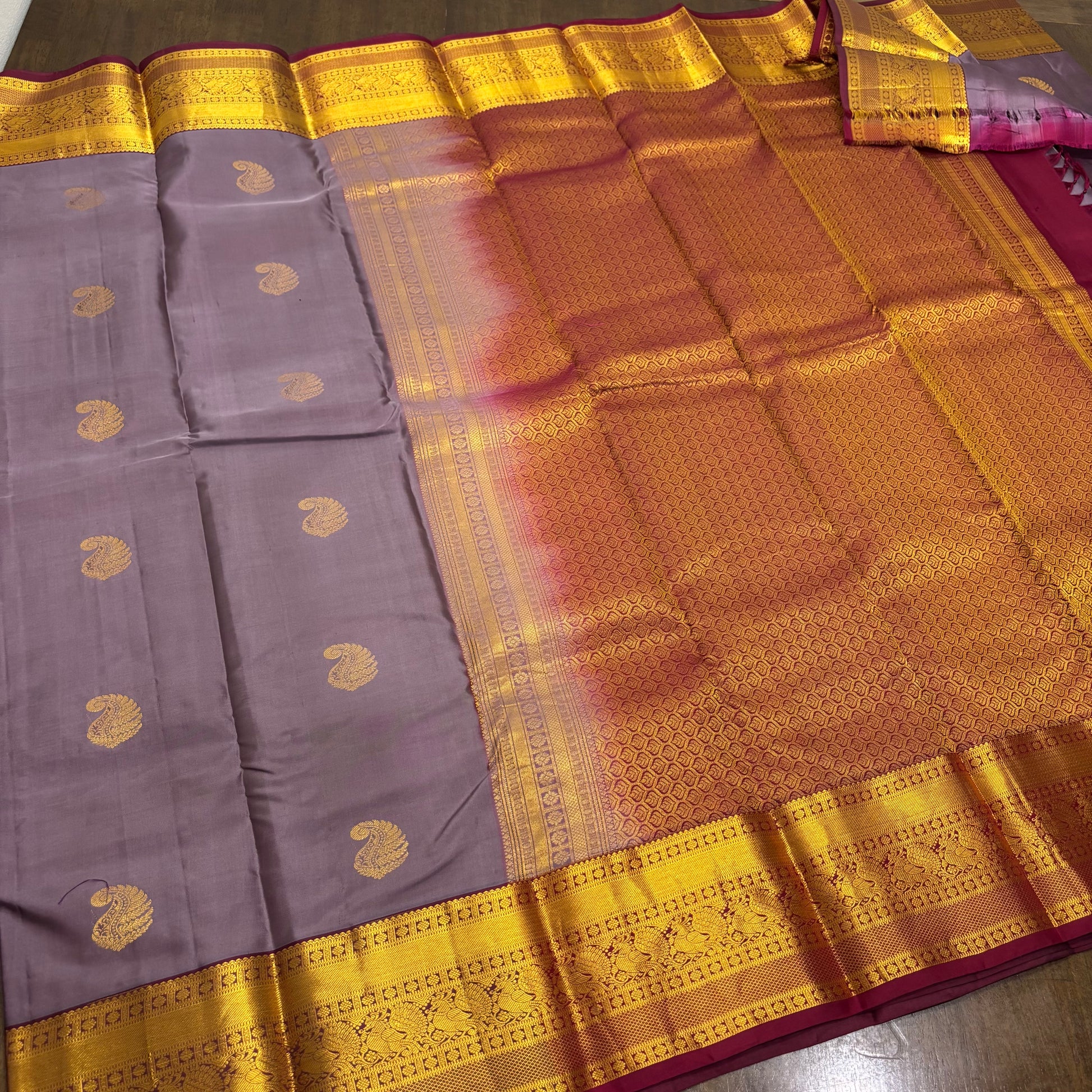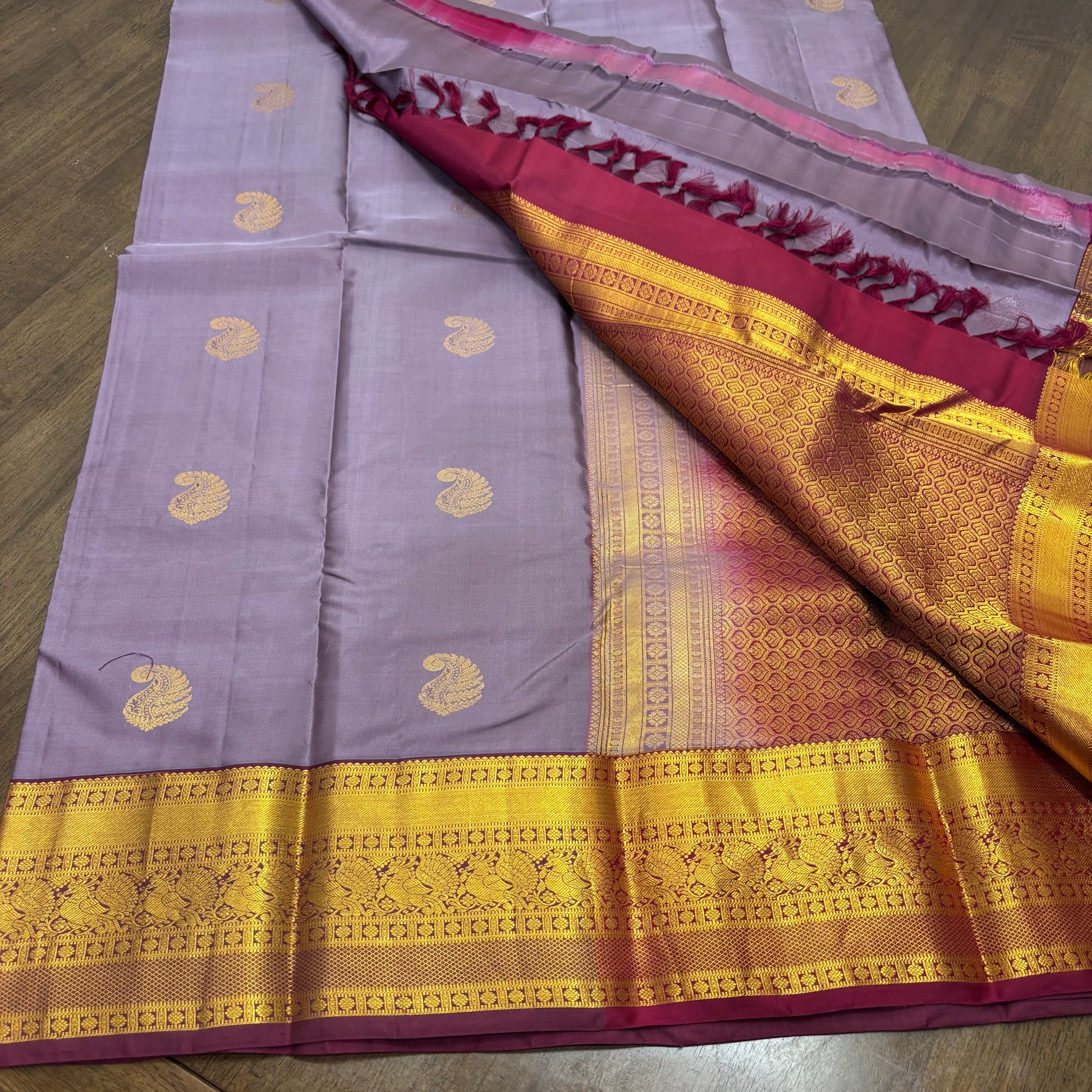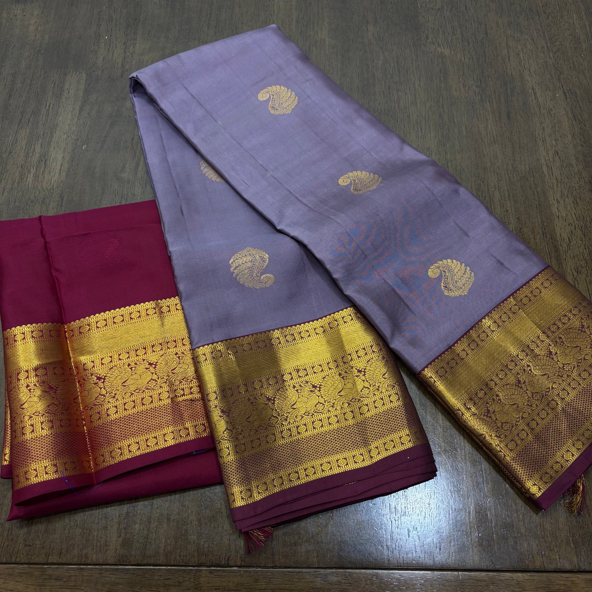 Elegant Pastel Purple and Maroon Kanchipuram Silk Saree