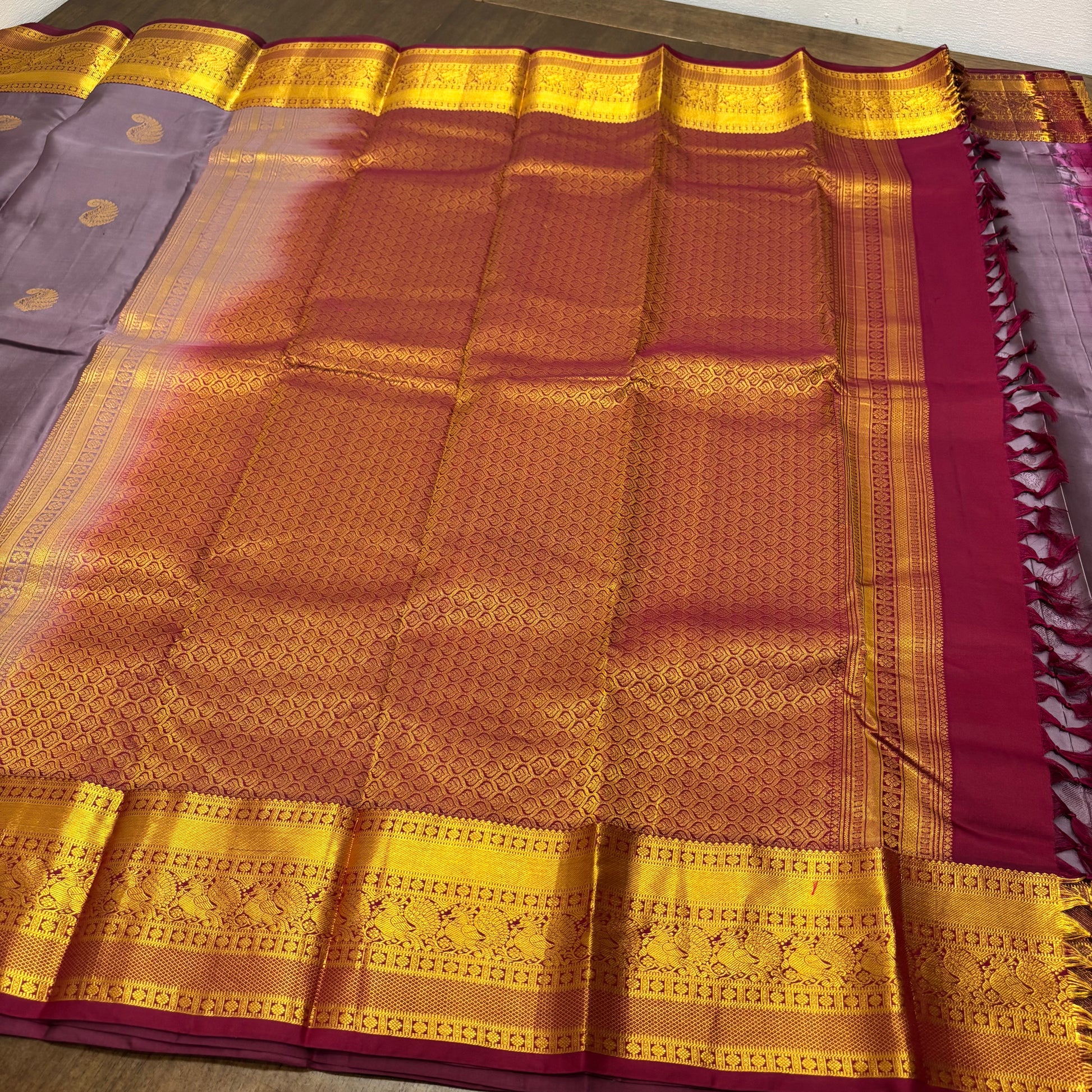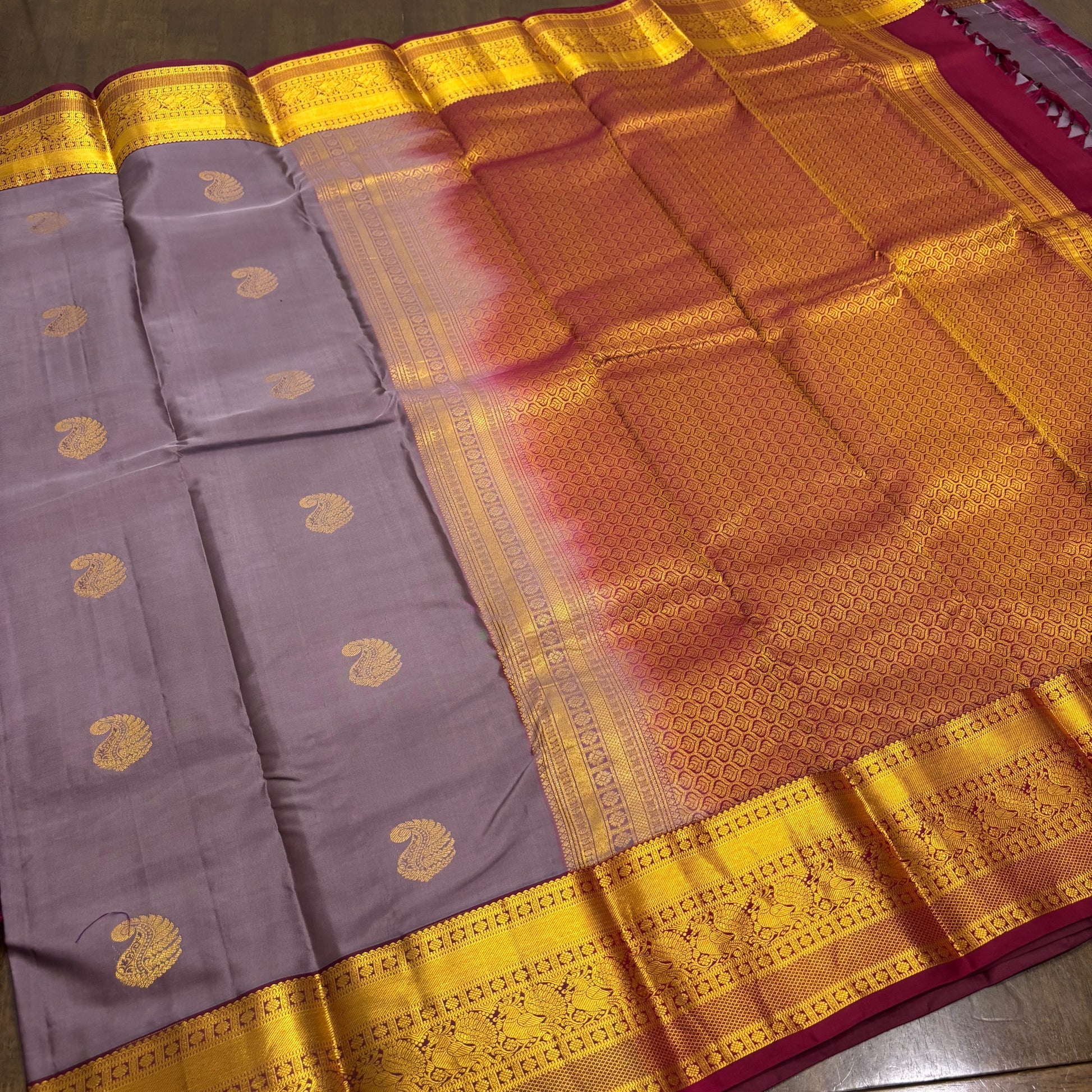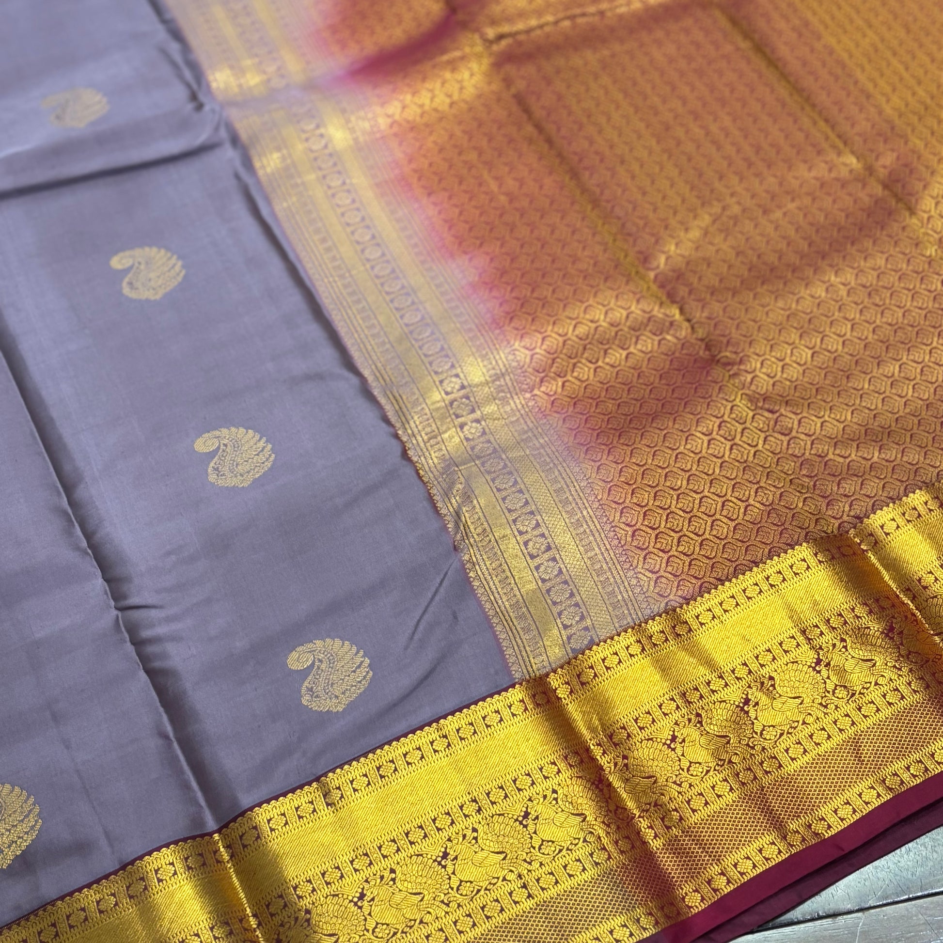 Elegant Pastel Purple and Maroon Kanchipuram Silk Saree