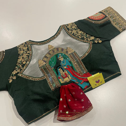 Dark Green Sleeveless Blouse – Regal Glam for Festive Styling