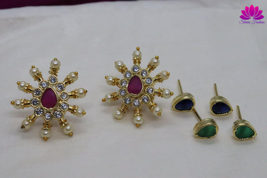 Classic Radiance – Kemp Stone Choker Set with Pink & Green Stones and White Hanging Motifs