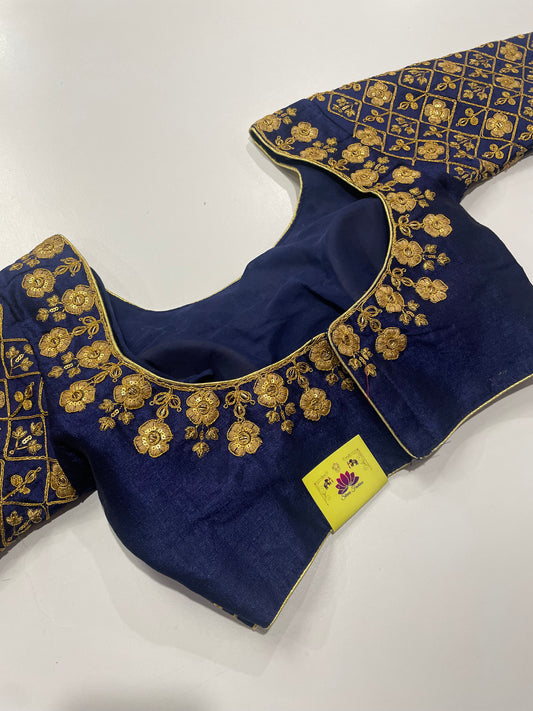 Dark Blue Designer Ready-Made Blouse with Floral Zari Embroidery – Luxe Pairing for Sarees & Lehengas