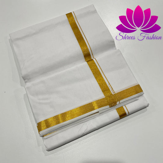 Gold Silk Saree with Purplish Blue Contrast Border & Pallu