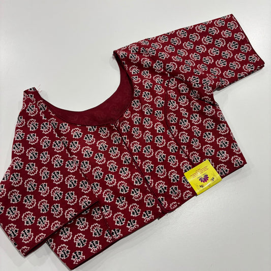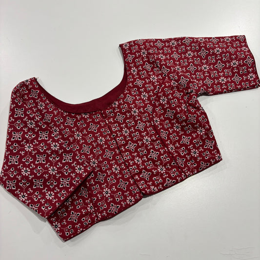 Red Ajrakh Print Cotton Blouse – Handcrafted Heritage for Everyday Elegance