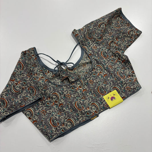 Grey Kalamkari Print Cotton Blouse – Artisanal Elegance for Everyday Ethnic Wear