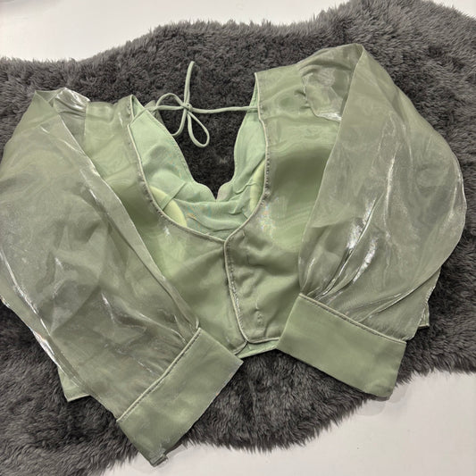 Zimmy Choo Pastel Green Bollywood Blouse – Full Sleeve Elegance for Festive & Bridal Glam