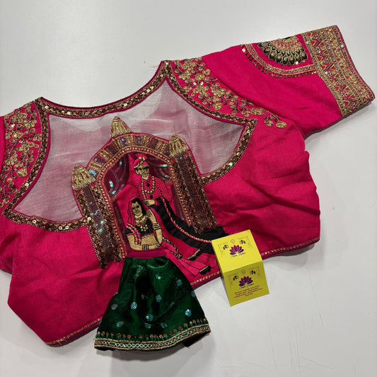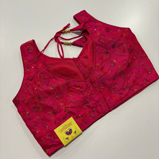 Rani Pink Readymade Blouse with Gold Embroidery & Attached Sleeve Fabric