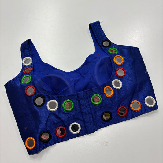 Royal Blue Glam Blouse with Mirror Work & Sleeve Drape