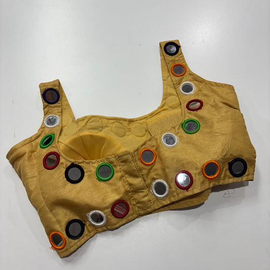 Gold Glam Blouse with Mirror Work & Sleeve Drape