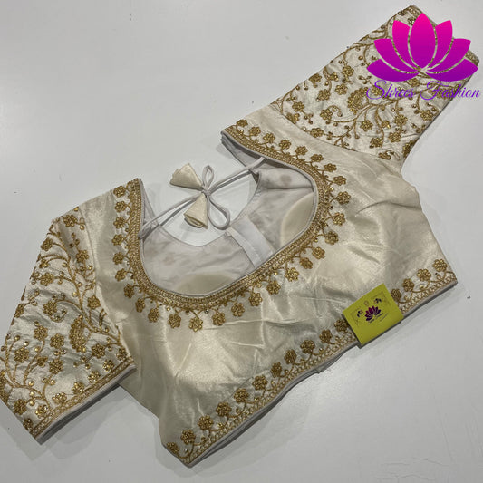 Ivory Elegance: Designer White Saree Blouse