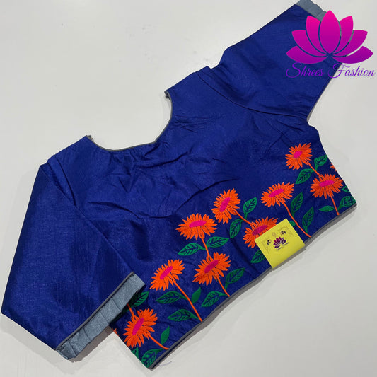 Midnight Marvel: Designer Navy Blue Saree Blouse
