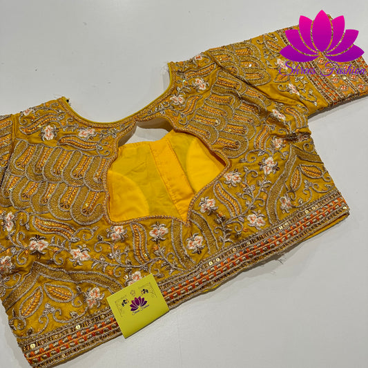 Sunshine Elegance: Yellow Blouse with All-Over Design Work