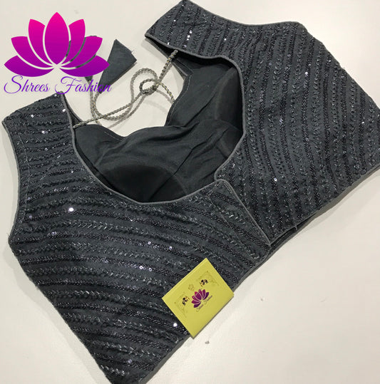 Misty Elegance: Grey Blouse with Back Embroidery Work