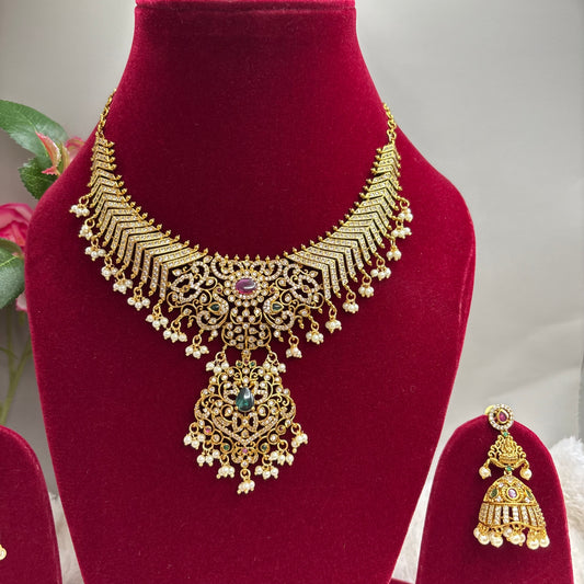 Regal Spark – AD Stone Necklace Set in Heritage Gold