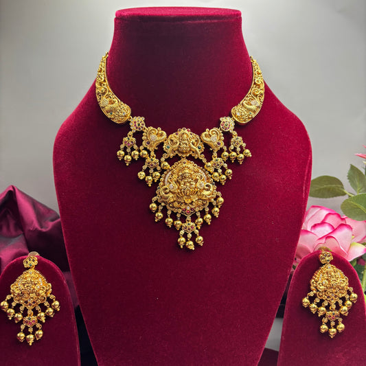 Sacred Elegance – Matte Gold Temple Hasli Necklace Set