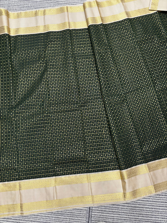 Elegant Semi Kanchipuram Saree – Bottle Green Body & Beige Gold Border