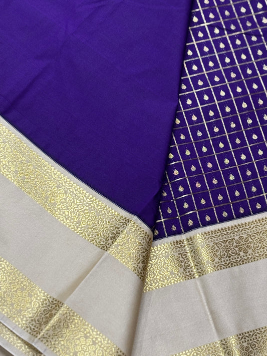 Elegant Semi Kanchipuram Saree – Royal Blue Body & Beige Gold Border