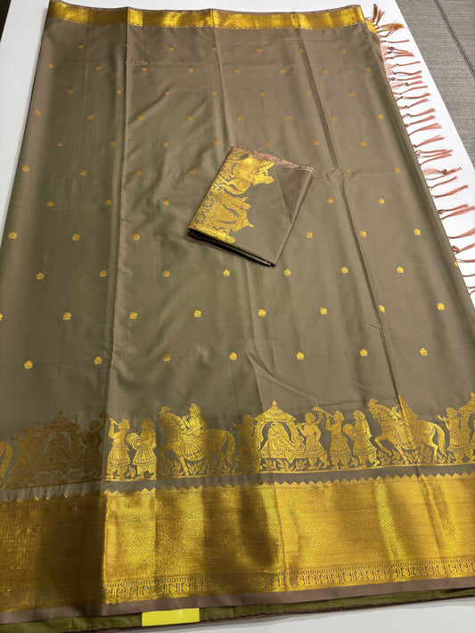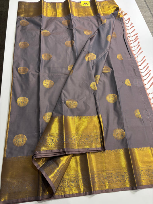 Elegant Greyish Blue Kanchipuram Semi Silk Saree with Golden Pallu & Border