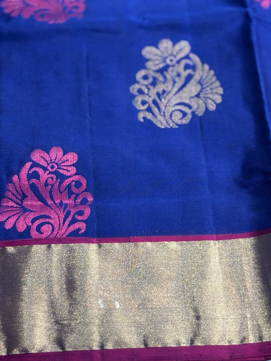 Dark Blue & Pink Kanchipuram Silk Saree with Elegant Zari Accents