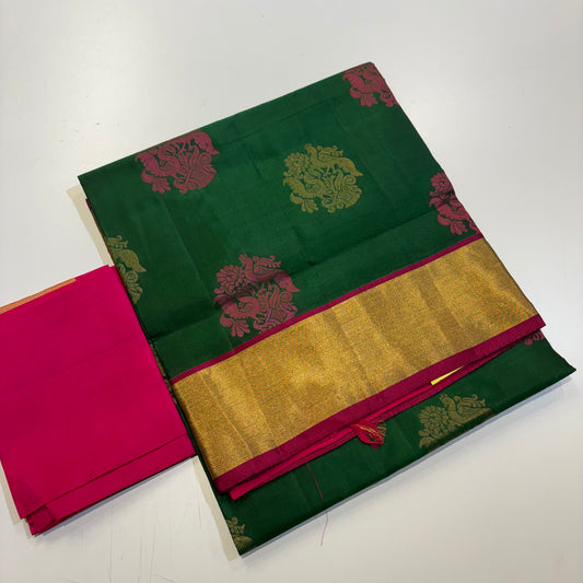Magnificent Kanchipuram Soft Silk Saree in Green and Pink With Rich Pallu | Pure Silk Saree | Silk Mark India Certified