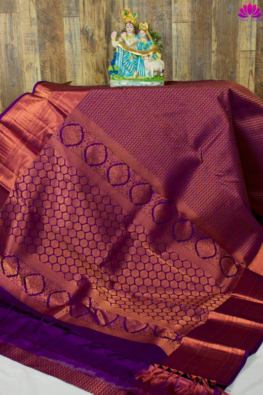 Purple Copper Zari Silk Saree | Kanchipuram Silk | Silk Mark Certified