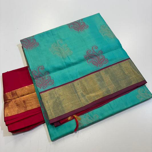 Pure Kanchipuram Silk Saree – Cyan Grace with Rani Pink Radiance