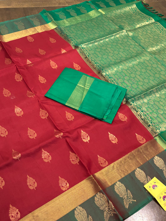Maroon & Green Kanchipuram Soft Silk Saree with Traditional Elegance