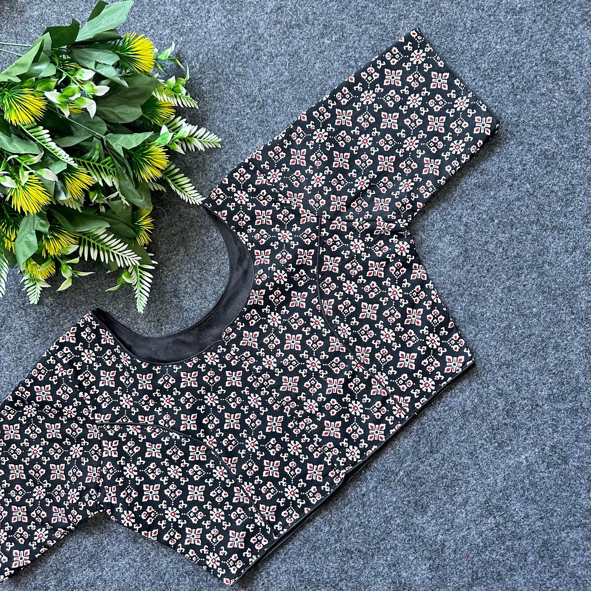 Classic with a hint of vibrance, this Black cotton blouse features tasteful Red accents that add depth and character to your everyday ethnic wardrobe. Crafted from breathable cotton and tailored for comfort, it’s ideal for pairing with handloom sarees, printed drapes, or festive cottons. The understated contrast makes it perfect for temple visits, casual gatherings, or relaxed celebrations where simplicity meets style.