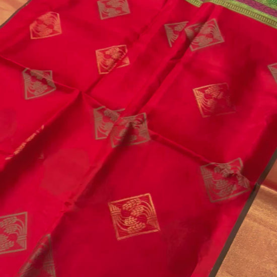 Festive Flame – Pure Kanchipuram Silk Saree in Red & Green