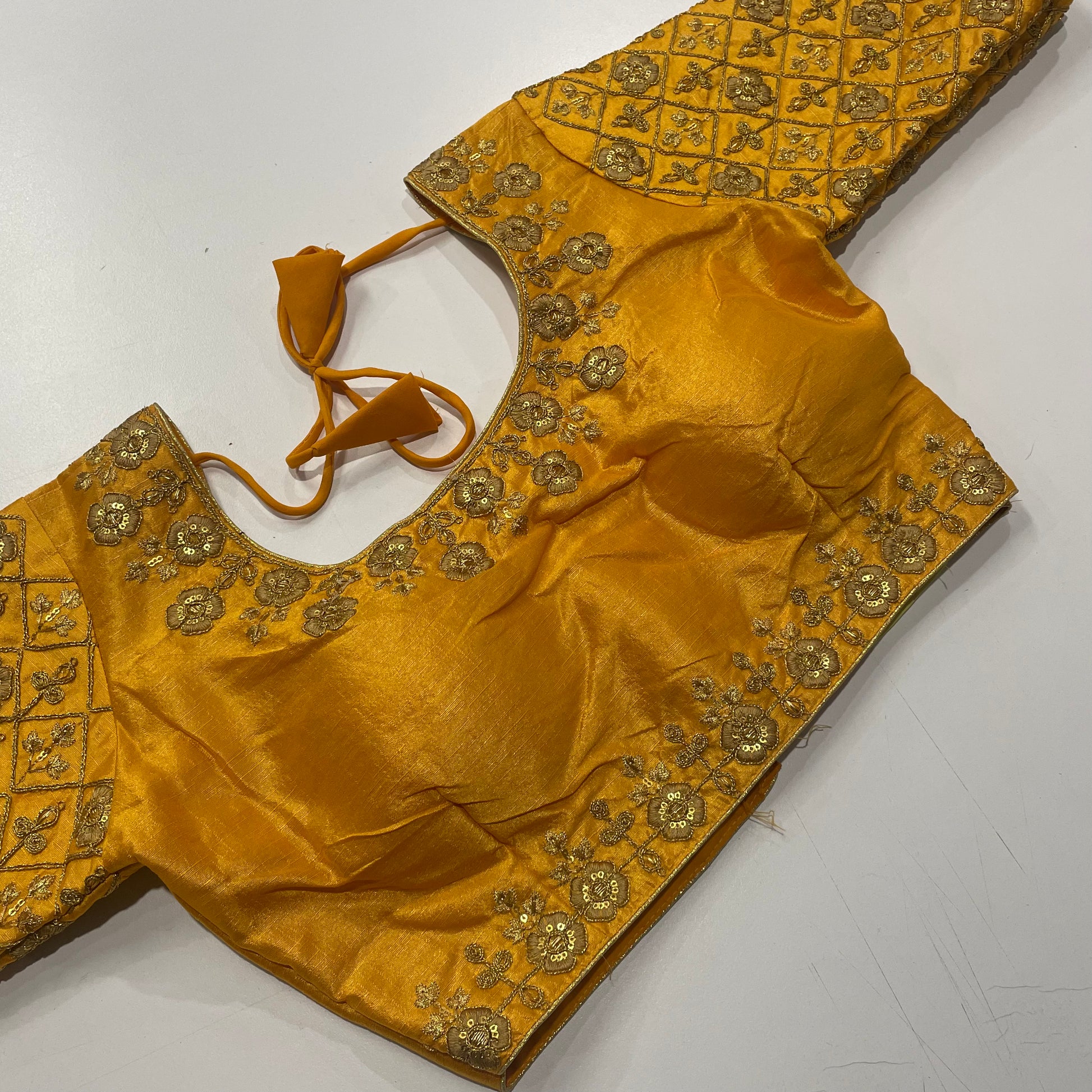 Whether you're styling it for a Haldi ceremony, pooja, or festive celebration, this blouse brings sunshine, tradition, and golden elegance to your ethnic wardrobe.